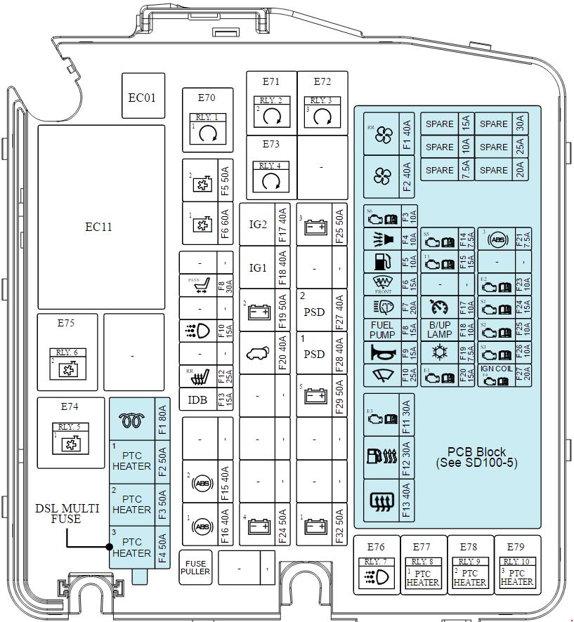 | F4 | 50 | PTC HEATER 3 | E/R Junction Block (RLY.10) |