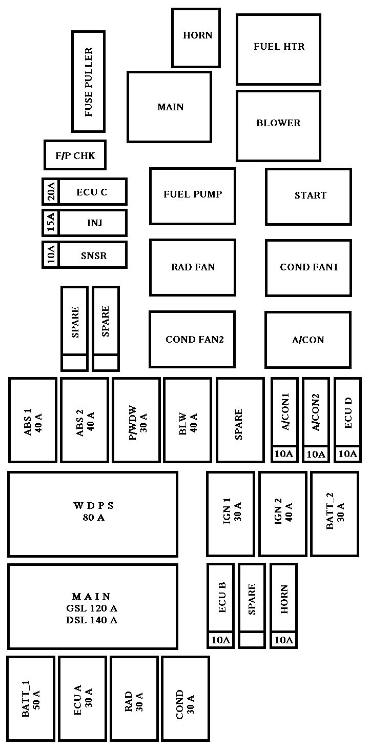 Kia Sephia Sport mk2 (2005 – 2009) – fuse box diagram