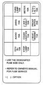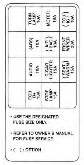 KIA Spectra – fuse box diagram – driver-side kick panel