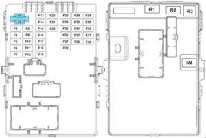 | F32 | 10 | MODULE 4 | A/C Control Module, Cluster Ionizer, Sunroof Motor, Electro Chromic Mirror, Diesel Box (RLY.2,3 – PTC Heater Relay #2,#3), E/R Fuse & Relay Box (R1 – Blower Relay) |