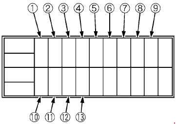 CX-5 Mazda CX-5 (2014) – fuse box diagram 29 July 2019 admin 0 Mazda CX-5 (2014) – fuse box diagram Year of production: 2014 Fuse block (Engine compartment) Position Description Fuse rating [A] Protected component 1 ADD FAN GE 30 Cooling fan 2 IG2 30 For protection of […]