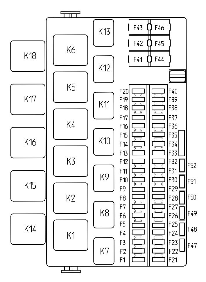 * It is specified the set of relays for the top level of equipment – «Luxe» (depending on the set of options selected some fuses of this set in other versions may not be used)