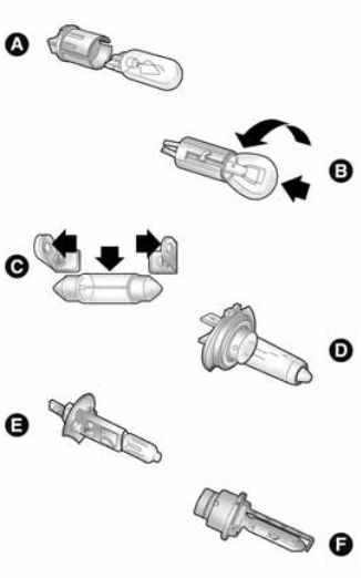 B – Bayonet type bulbs: to remove them press the bulb and turn it anticlockwise