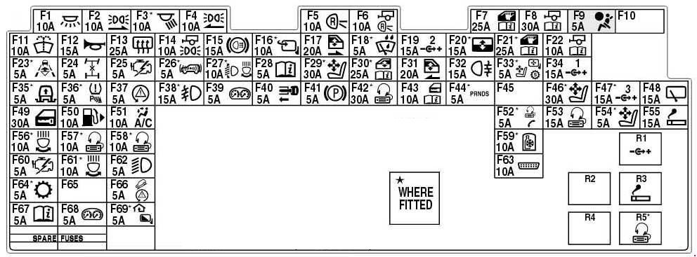 | 5 | 10 | Petrol – petrol EMS (purge valve, EGR, inlet manifold tune valve), E-Box fan |