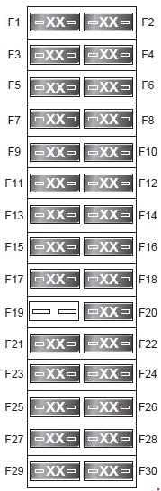 | 21 | 10 | up to 2014: Centre console switches (transfer box, HDC, DSC), headlamp levelling, rear climate control, smog sensor. from 2014: Centre console switches, Rear climate control. |
