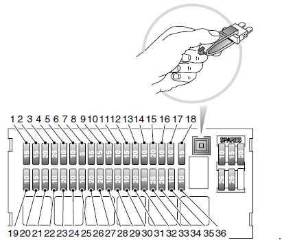 | 14 | 10 | Interior lights, clock, electric mirrors, diagnostic socket |