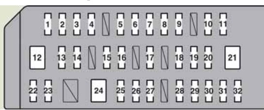 | 35 | ECU-B | 7,5 | Smart entry & start system, gauges and meters, outside rear view mirrors, air conditioning system, driving position memory system, electric power steering system, clock |