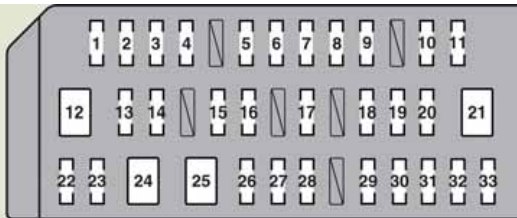 | 35 | ECU-B | 7,5 | Smart entry & start system, gauges and meters, outside rear view mirrors, air conditioning system, driving position memory system, electric power steering system, clock |