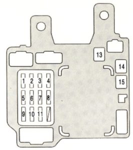 | 1 | ECU-IG | 15 | Cruise control system, power steering control system, shift lock system, anti-lock brake system. SRS airbag system, power door lock and theft deterrent system, power antenna, telephone, electronic cooling fan system. |