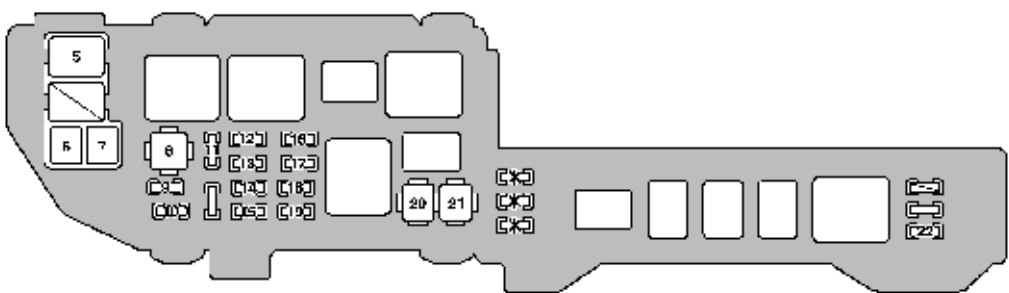 | 28 | ECU–IG | 15 | Cruise control system, Anti–lock brake system, Shift lock system, Power brake antenna, Theft deterrent system, Electronic modulated suspension, Wireless remote control |