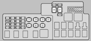 | 5 | AM2 | 30 | All components in “IGN” and “IG2” fuses and starting system |