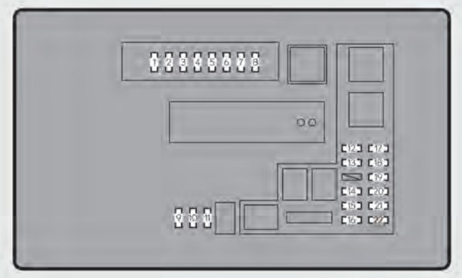 Skoda Roomster (2012) – fuse box diagram Year of production: 2012 Fuse box in dashboard Number Power consumer 1 S-contact 2 Start/stop 3 Instrument cluster, headlight range adjustment 4 ABS control unit 5 Petrol engine: […]