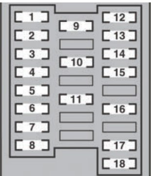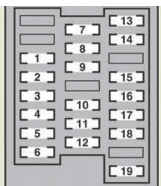 | 11 | PANEL | 7,5 | Steering switches, distance control switch, audio system, glove box light, switch illumination, cigarette lighter, shift lever light, touch screen, rear personal lights |