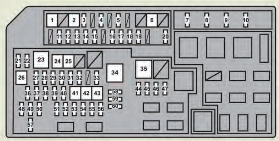 | 27 | H-LP HI | 25 | DIM relay, headlights, daytime running light system |