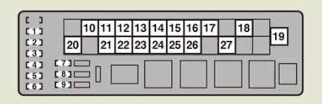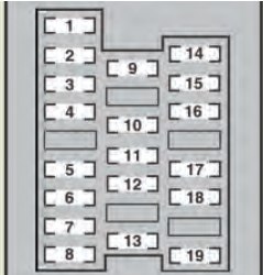 | 10 | PANEL | 7,5 | Switch illumination, air conditioning system, display, cigarette lighter illumination, shift lever light, instrument panel lights |