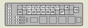 | 7 | MPX-B | 10 | Headlights, front fog lights, parking lights, license plate lights, windshield washer, horns, power door lock system, power windows, power seats, electric tilt and telescopic steering column, meters and gauges, smart access system with push-button start, outside rear view mirrors, air conditioning system, security system |
