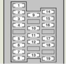 | 15 | RH-IG | 7,5 | Seat belts, automatic transmission, seat heaters and ventilators, windshield wiper de-icer, power heater |