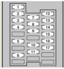 | 15 | RH-IG | 7,5 | Seat belts, automatic transmission, seat heaters and ventilators, windshield wiper de-icer, power heater |