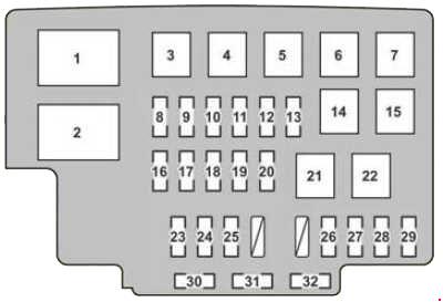 | 28 | ECU-ACC | 7,5 | Navigation system display, power rear view mirror control, shift lock control system, multiplex communication system |
