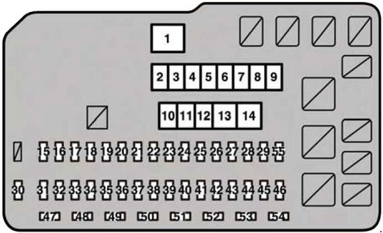 | 18 | IG2 | 30 | 2010-2012: Starter system, IGN, GAUGE NO. 2, ECU IG NO. 2 2013-2015: IGN, GAUGE NO. 2, ECU IG 2 |