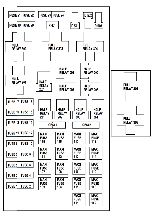 | 305 | — | Fuel pump HI/LO relay (supercharged engine only) |