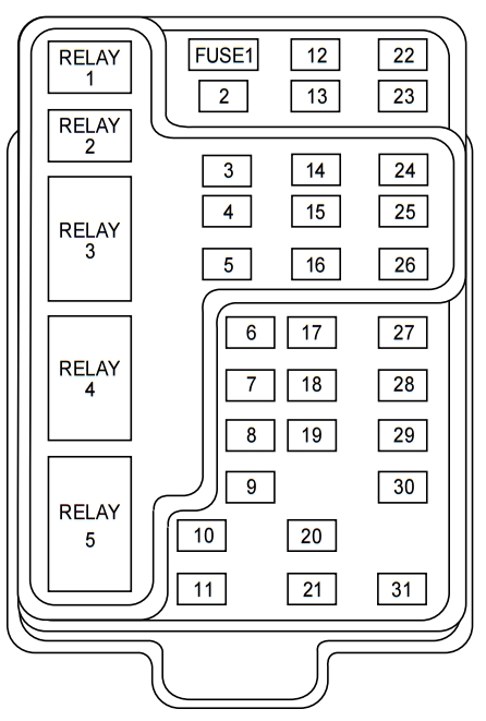 | 29 | 5 | Autolamp module, Transmission overdrive control switch, Central security module, Beltminder |