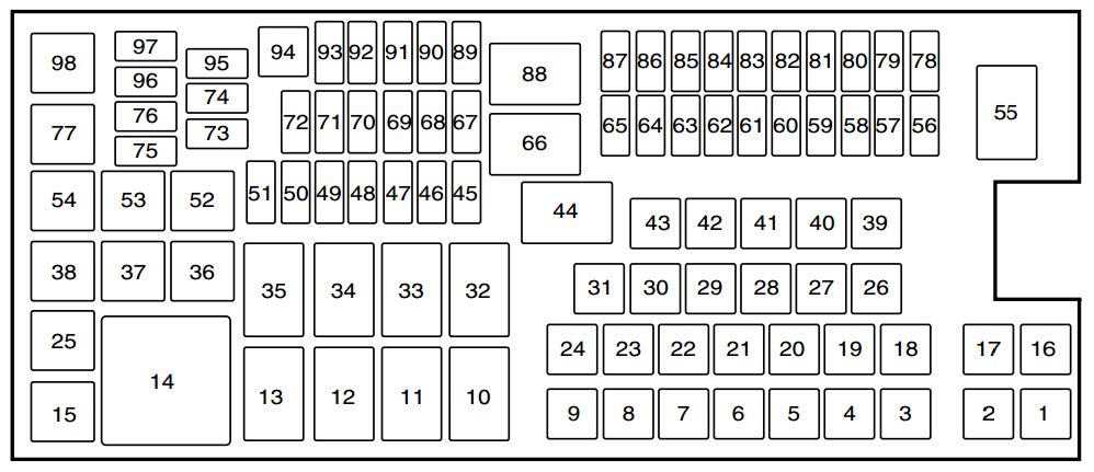 | 94 | 30 | Passenger compartment fuse panel run/start |