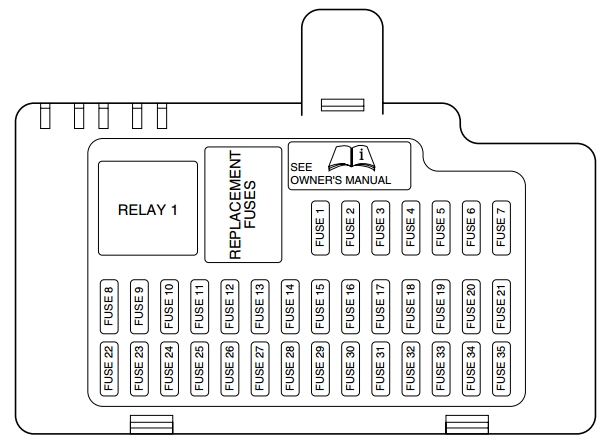 | 4 | 5 | Cluster, Powertrain Control Module (PCM) relay, Fuel pump relay, REM |