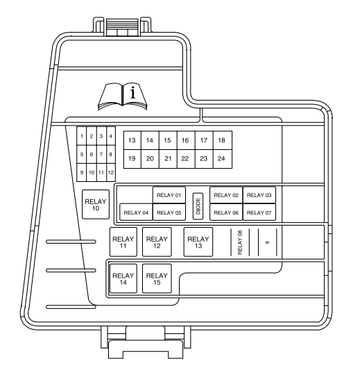 | 1 | 15 | Decklid release solenoid, Passenger door lock motors (2002-2006), Steering column lock (2003) |