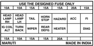 Maruti Suzuki Gypsy (Petrol) – fuse box diagram