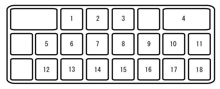 | 12 | ROOM | 15 | Audio system, Overhead light |