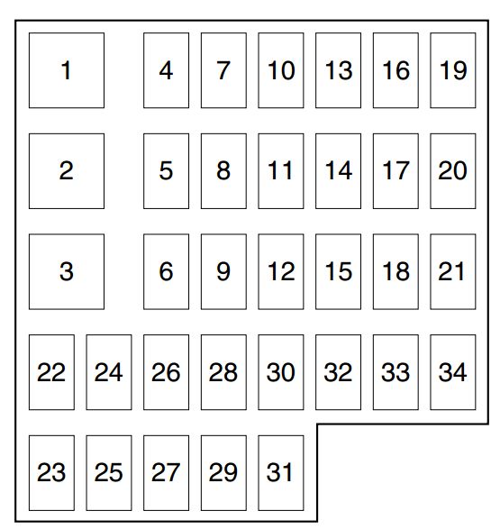 | 32 | H/L LO RH | 15 | Headlight low beam (RH) |