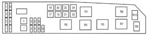 | 5 | 2* | Powertrain Control Module (PCM relay), Fuel pump relay, Main fan relay, High/Low speed fan relay 2, PATS module |