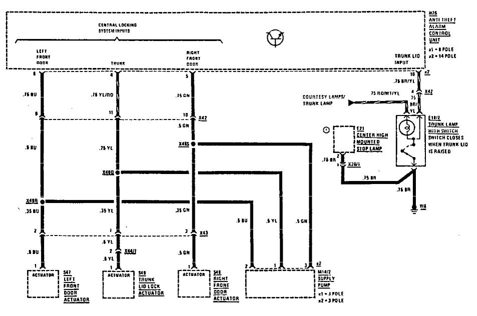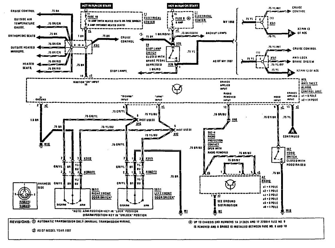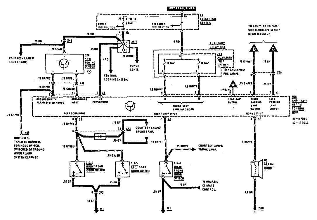 Mercedes-Benz 190E (1990 – 1991) – wiring diagrams – security/anti-theft