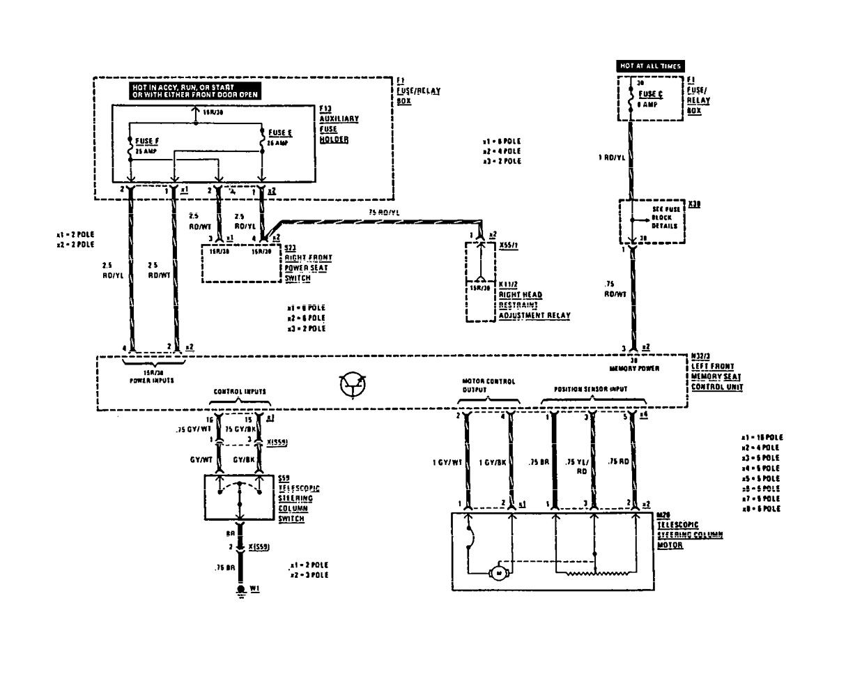 Mercedes-Benz 300CE (1991) – wiring diagrams – steering column