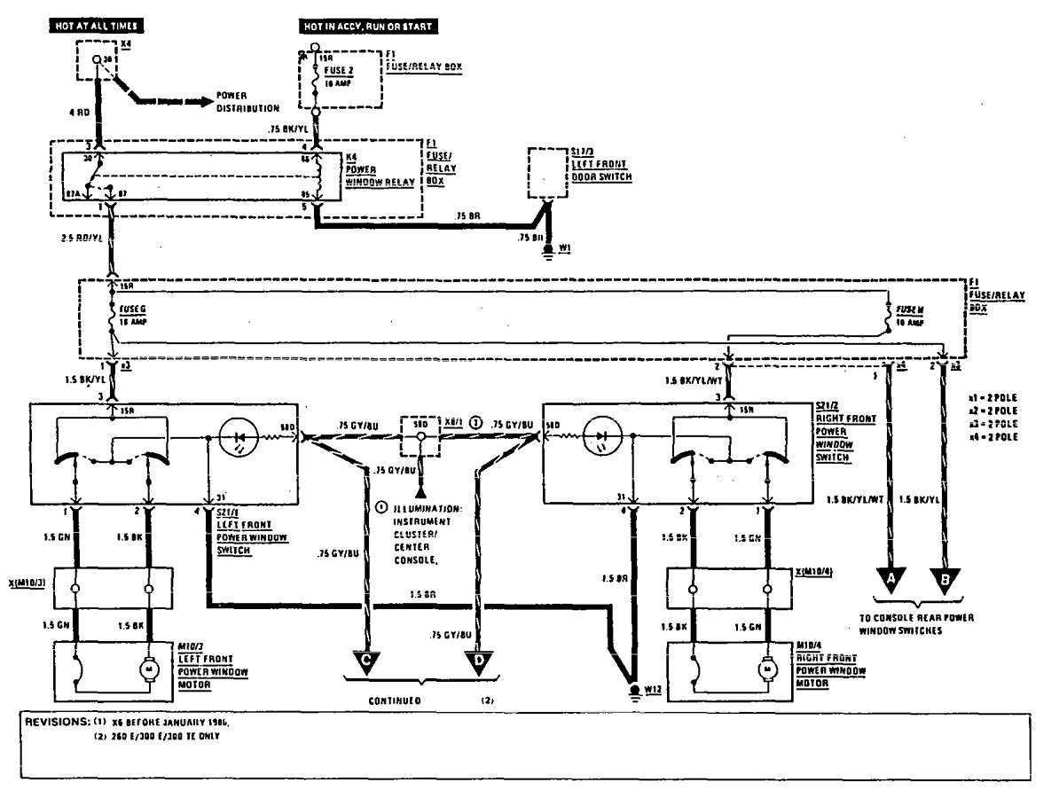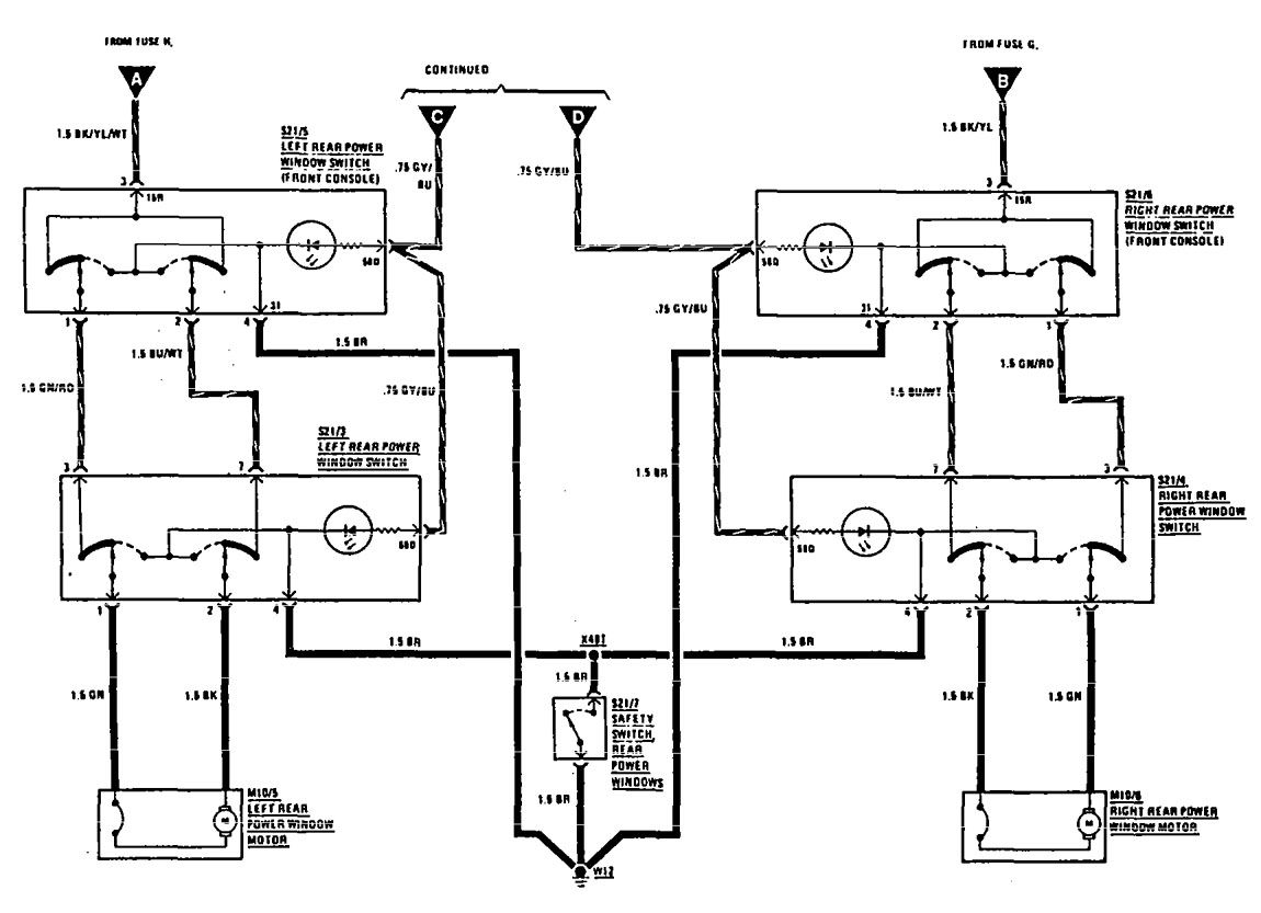 Mercedes-Benz 300E (1990 – 1991) – wiring diagrams – power windows