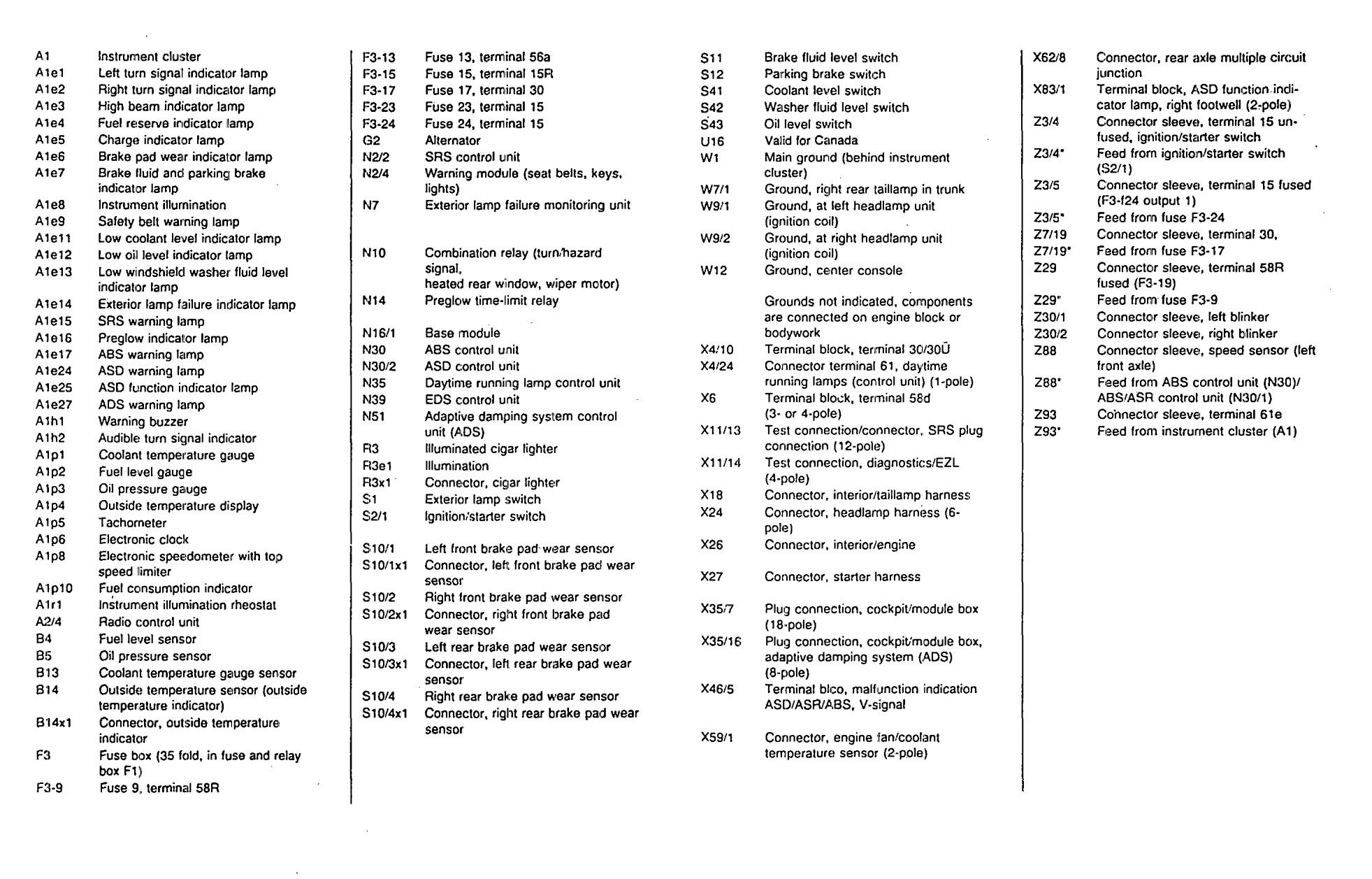 Mercedes-Benz 300SD (1992 – 1993) – wiring diagrams – instrumentation