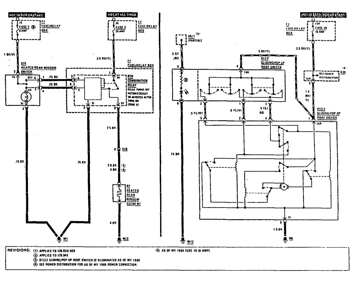 Mercedes-Benz 300SEL (1990 – 1991) – wiring diagrams – rear window defogger