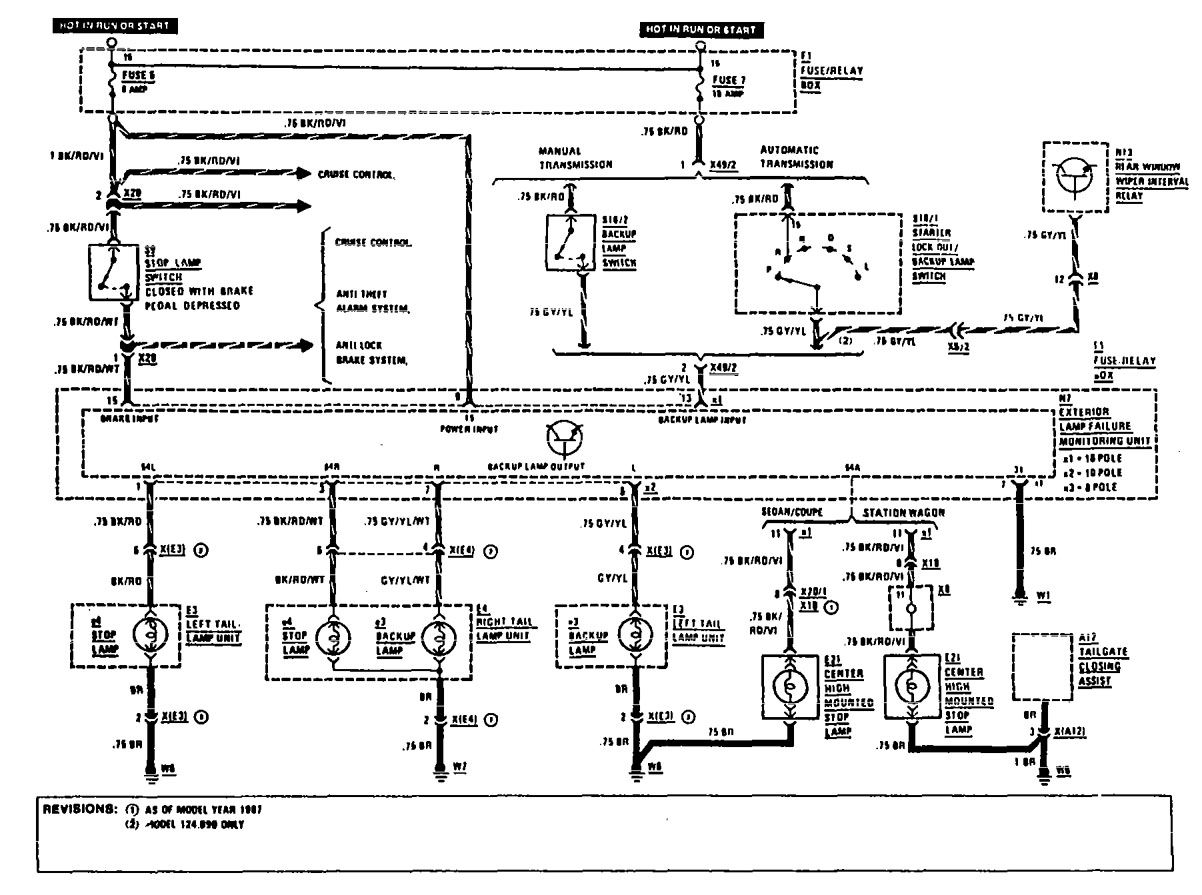 Mercedes-Benz 300TE (1990 – 1991) – wiring diagrams – reverse lamps
