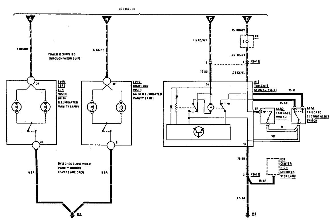 Mercedes-Benz 300TE (1990) – wiring diagrams – vanity mirror lamp