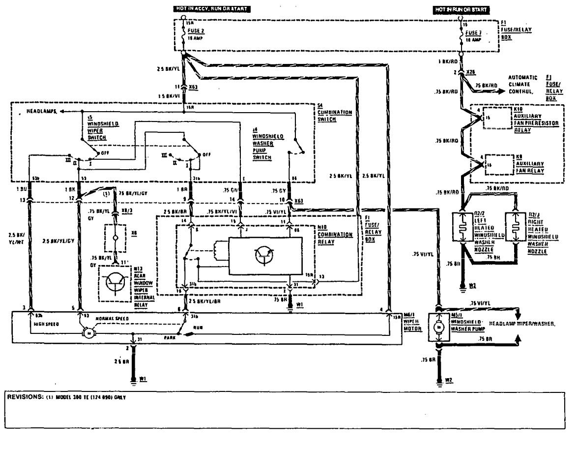 Mercedes-Benz 300TE (1990 – 1991) – wiring diagrams – wiper/washer