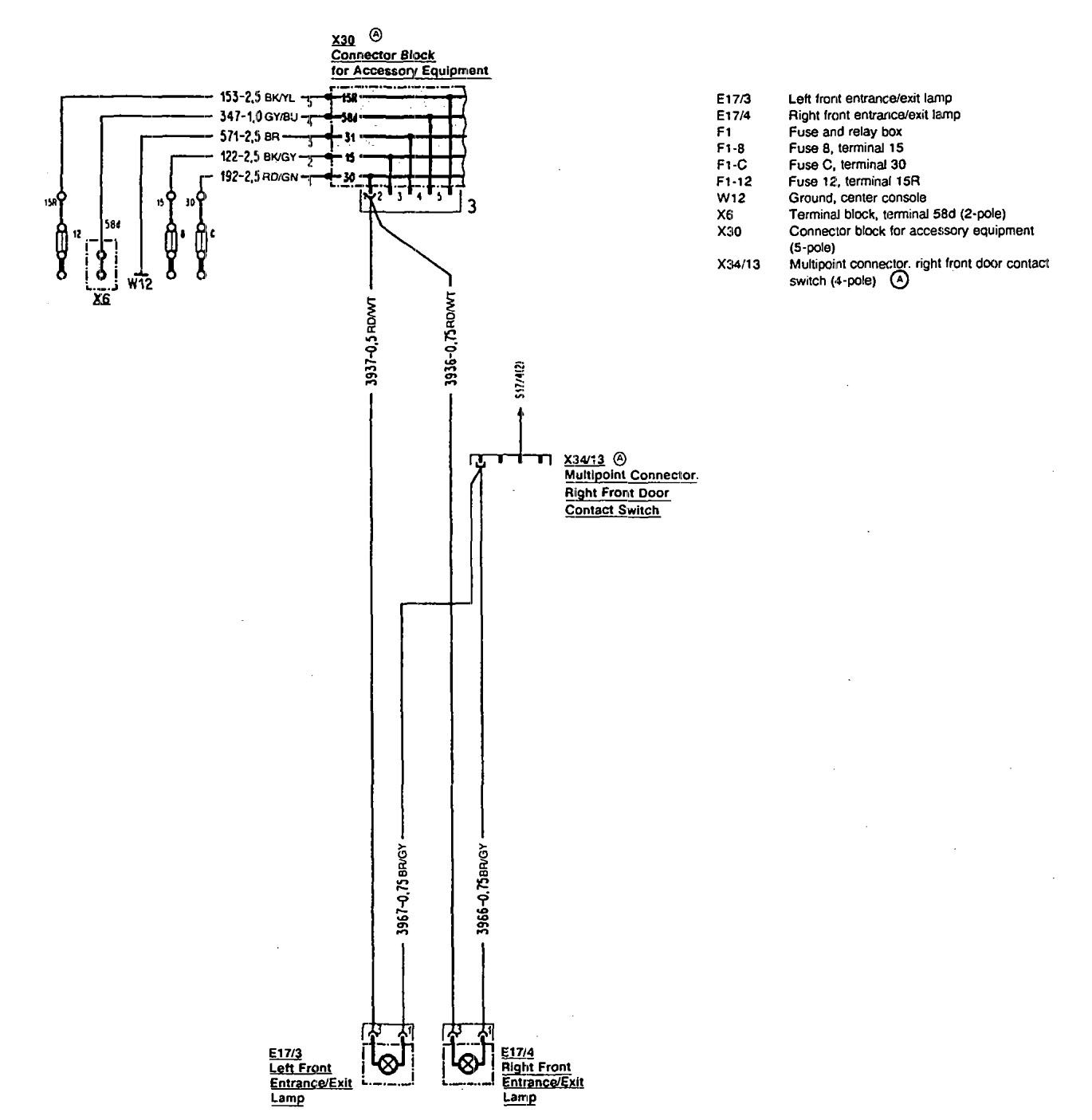 Mercedes-Benz 500SL (1990 – 1993) – wiring diagrams – illuminated entry