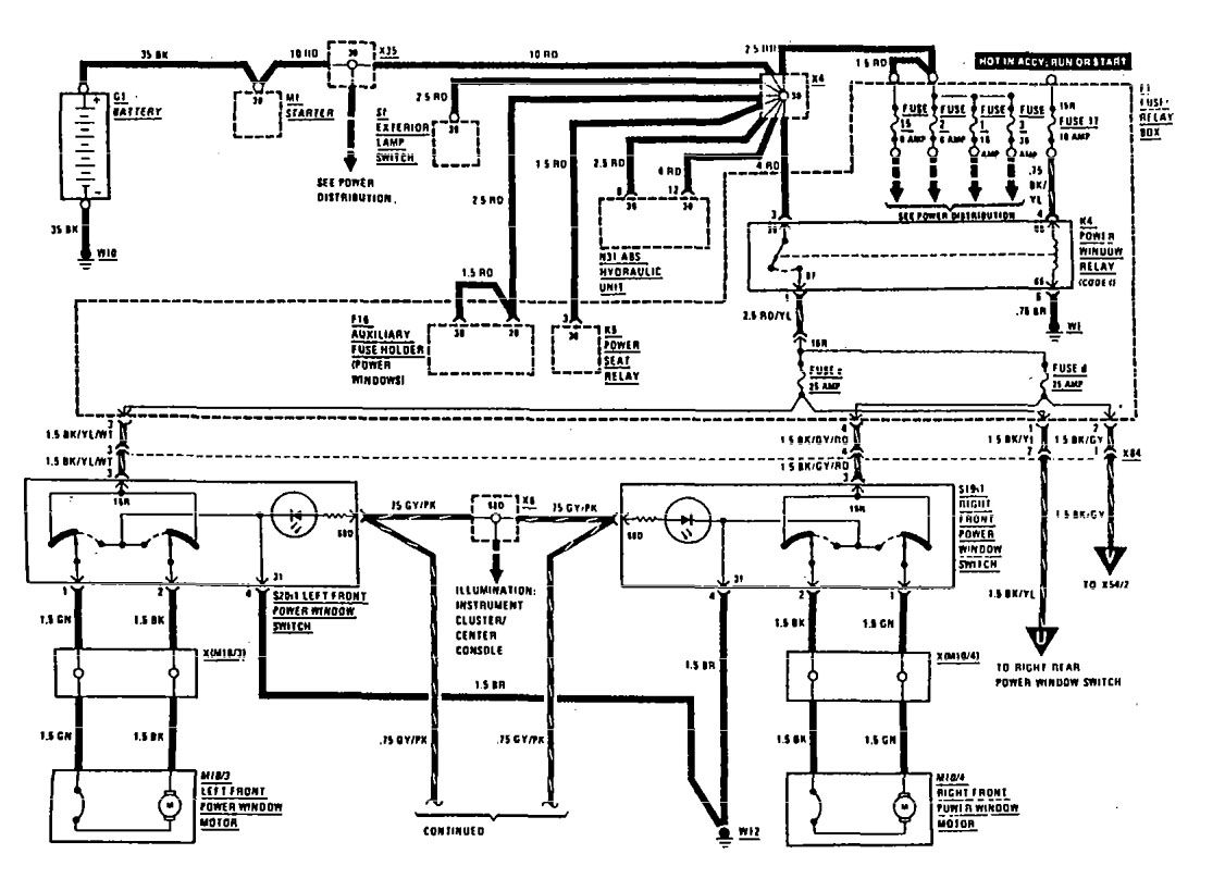 Mercedes-Benz 560SEC (1990 – 1991) – wiring diagrams – power windows