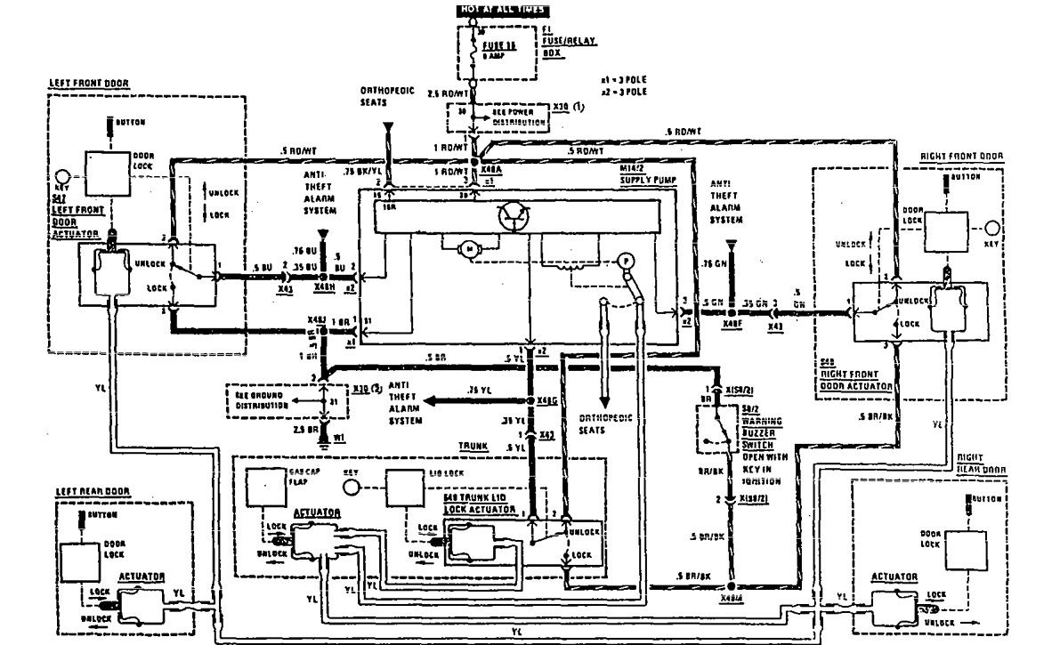 Mercedes-Benz 560SEL (1990) – wiring diagrams – power locks