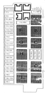 | Fuses 28 – 49 | Engine compartment – right side/passenger side |