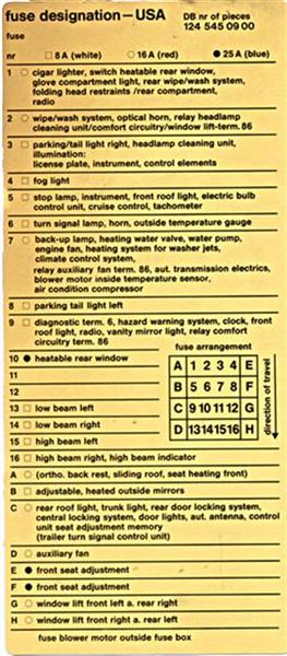 Mercedes-Benz E Class w124 – 300e – fuse box diagram (124 545 09 00)