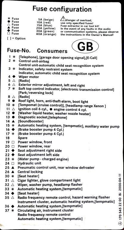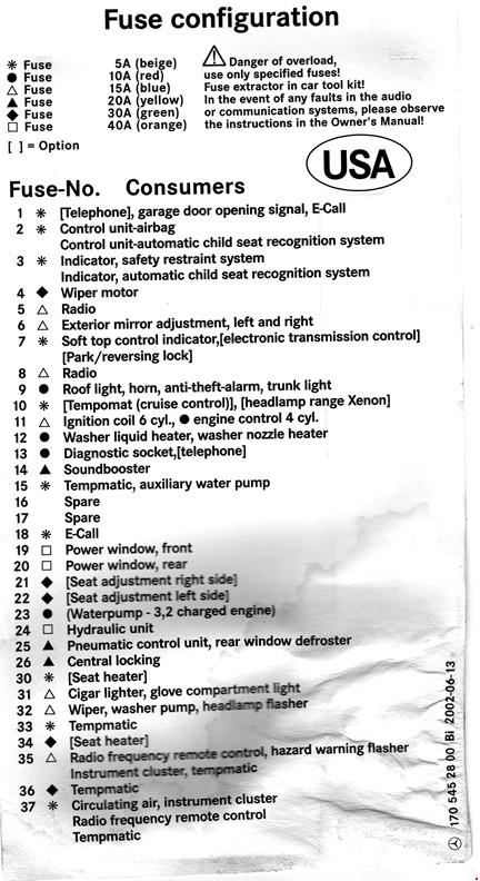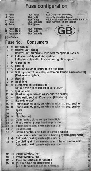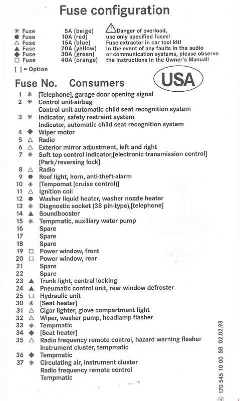 Mercedes-Benz SLK (R170; 1995 – 2004) – fuse box diagram