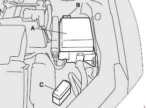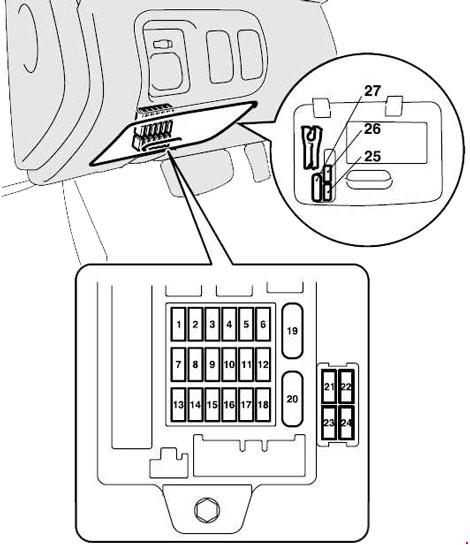The fuse block in the passenger compartment is located in front of the driver’s seat at the position shown in the illustration.