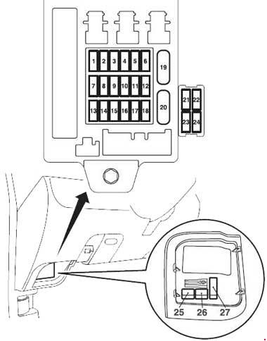 Fuse box on the dashboard