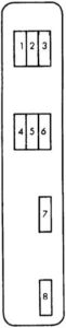 Cadillac DeVille (2000 – 2001) – fuse box diagram Year of production: 2000, 2001 Engine compartment The front Bussed Electrical Center (BEC) is located next to the engine on the passenger’s side of the vehicle. To […]